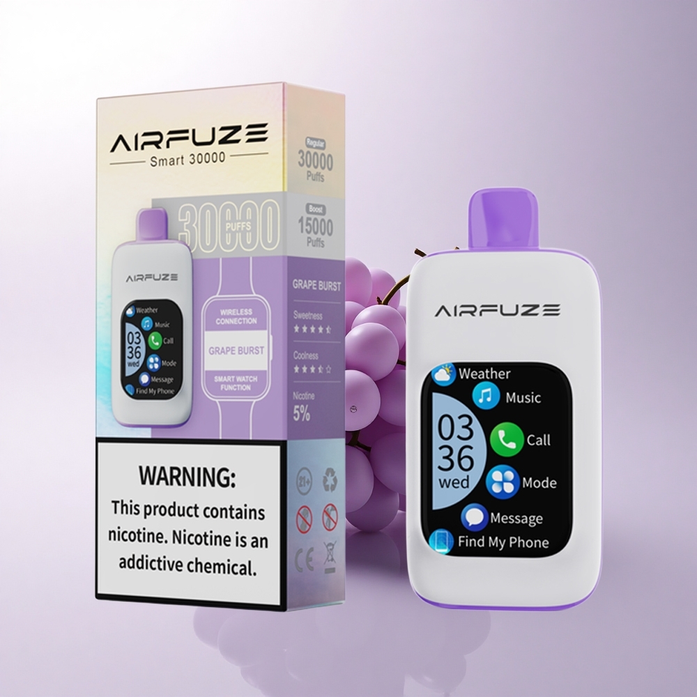 AirFuze Smart 30000 Puffs انفجار العنب الذكي بشاشة تعمل باللمس وسعة بطارية 900 مللي أمبير