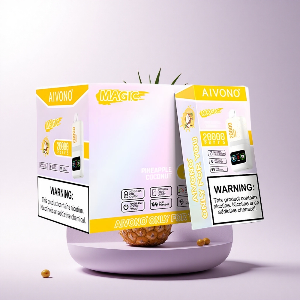 Aivono Aim Magic 20000 Puffs أناناس جوز الهند مع شاشة إل سي دي وشحن نوع سي وملف ثنائي