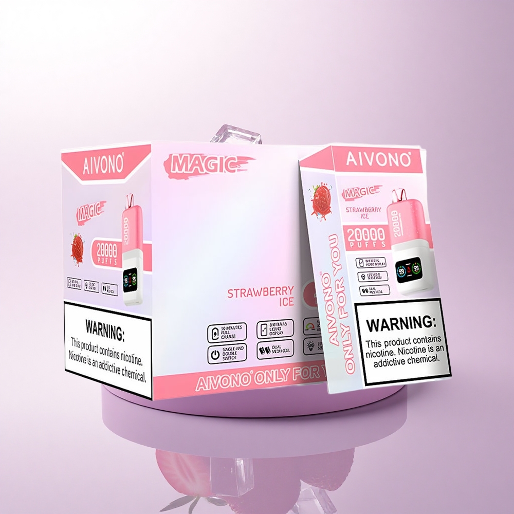 Aivono Aim Magic 20000 Puffs الفراولة الجليدية مع ملفين مزدوجين وشاشة إل سي دي
