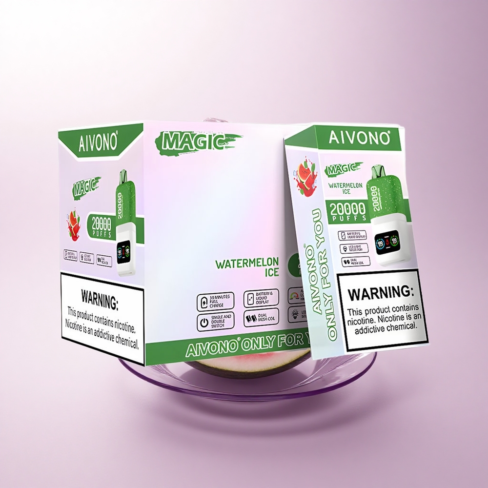 Aivono Aim Magic 20000 Puffs بطيخ مثلج بشبكة مزدوجة وشاشة إل سي دي