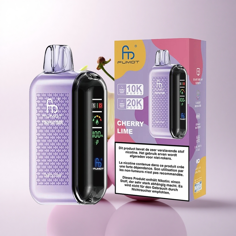 Fumot Tornado 20000 Puffs كرز ليمون مع بطارية قابلة للشحن وشاشة ذكية
