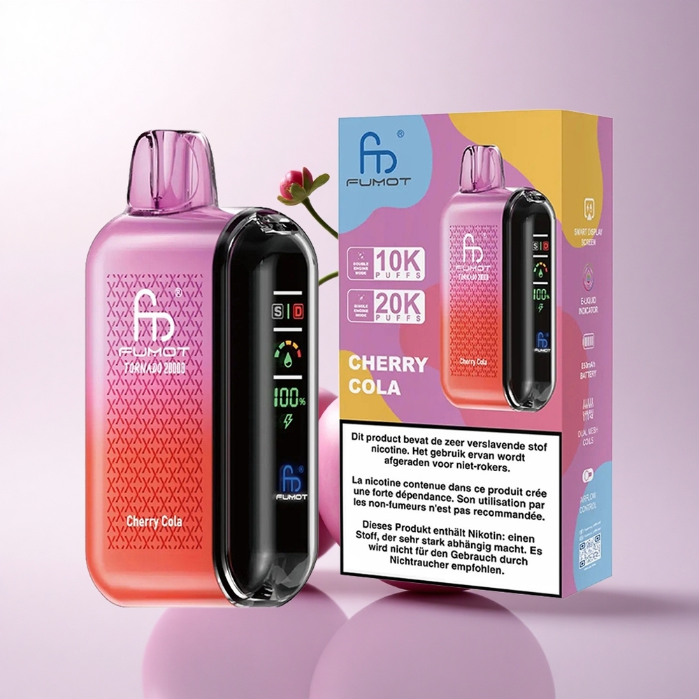 Fumot Tornado 20000 Puffs كولا الكرز الذكية مع بطارية 850 مللي أمبير وعرض ذكي