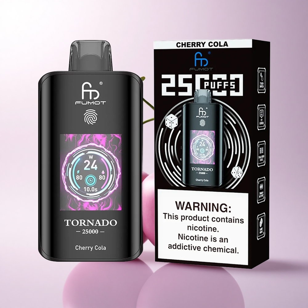 Fumot Tornado 25000 Puffs كولا الكرز مع شاشة عالية الدقة وبطارية قابلة للشحن