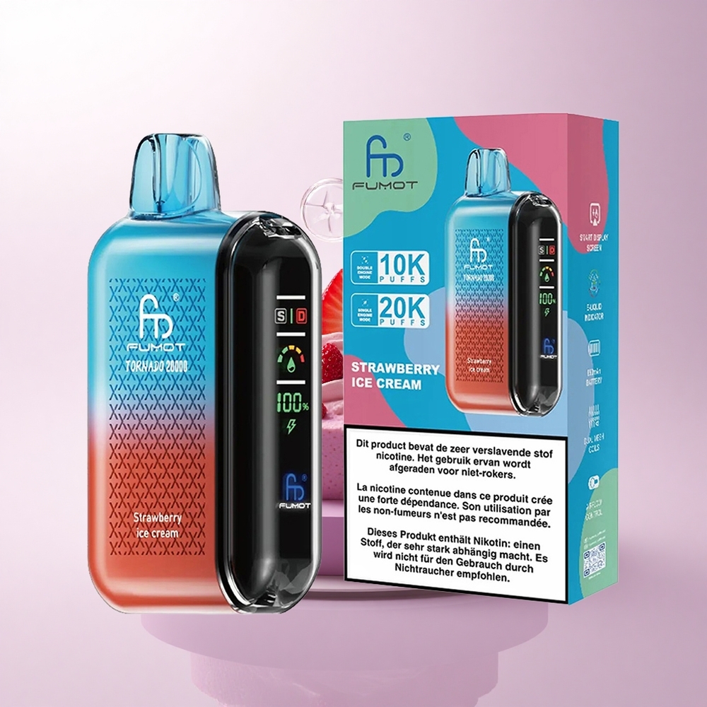 Fumot Tornado 20000 Puffs آيس كريم الفراولة مع بطارية 850 مللي أمبير وشاشة ذكية