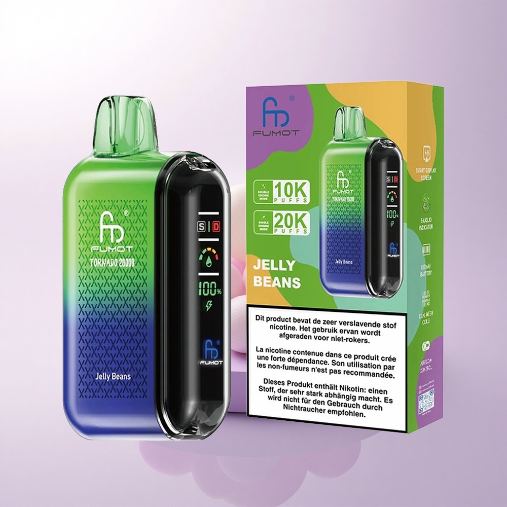 Fumot Tornado 20000 Puffs حبوب الجيلي المزدوجة بشاشة ذكية وسعة 20 مل
