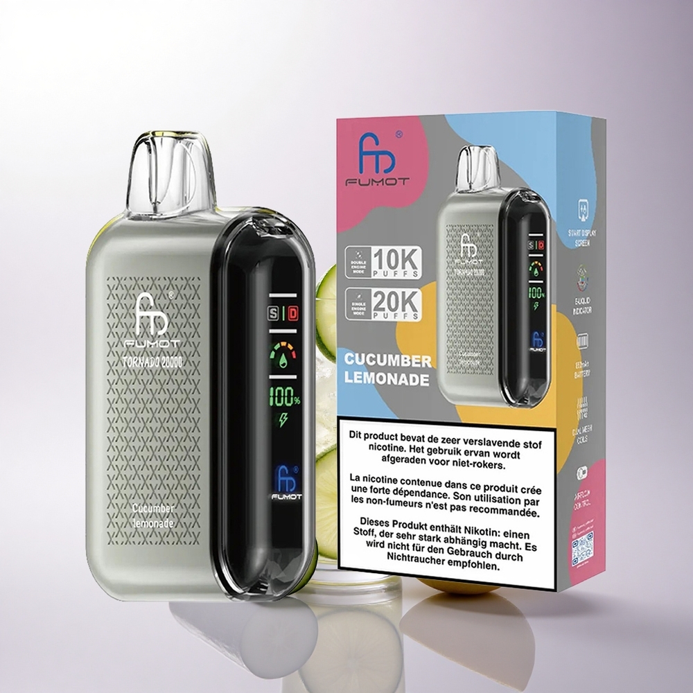 Fumot Tornado 20000 Puffs عصير الخيار بالليمون مع ملف مزدوج وبطارية قابلة للشحن