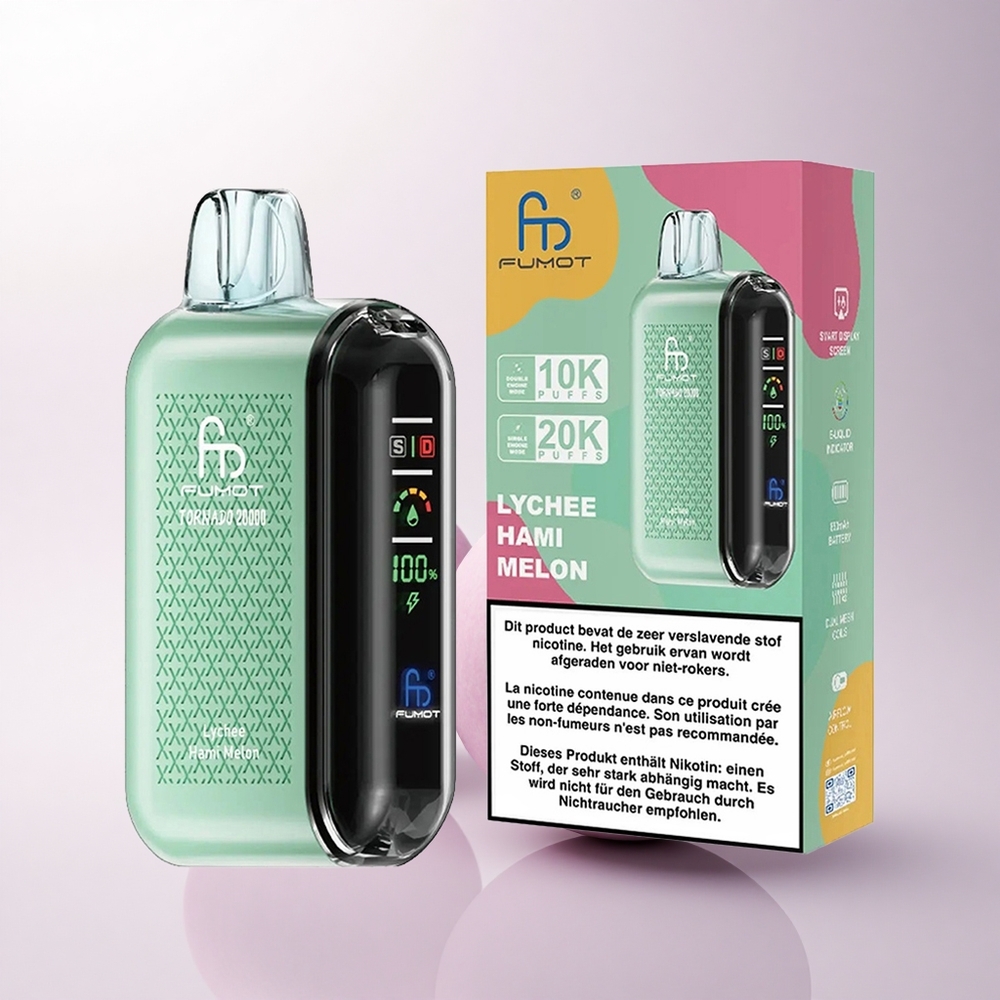 Fumot Tornado 20000 Puffs ليتشي ميلون هامي مع شاشة ذكية وبطارية قابلة للشحن
