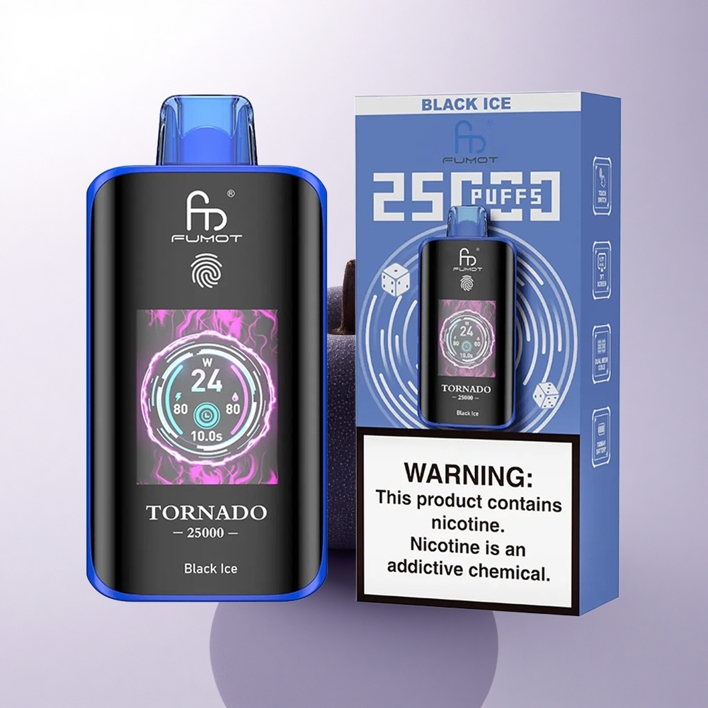 Fumot Tornado 25000 Puffs الثلج الأسود مع شاشة عالية الدقة وبطارية قابلة للشحن
