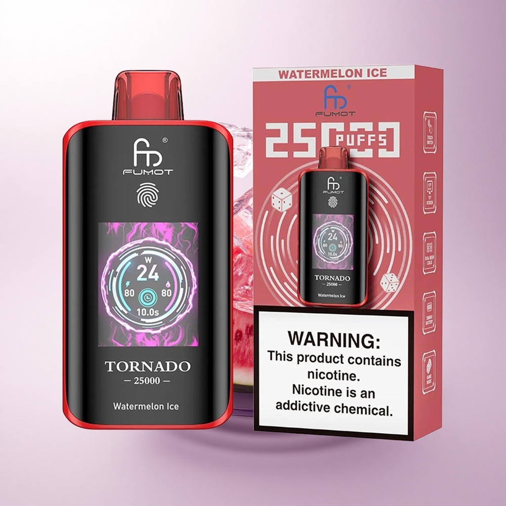 Fumot Tornado 25000 Puffs بطيخ مثلج بشاشة عالية الدقة وبطارية قابلة للشحن ومنفذ شحن نوع سي