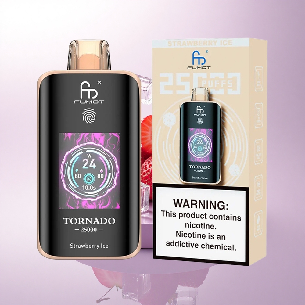 Fumot Tornado 25000 Puffs فراولة آيس شاشة عالية الدقة وبطارية قابلة لإعادة الشحن
