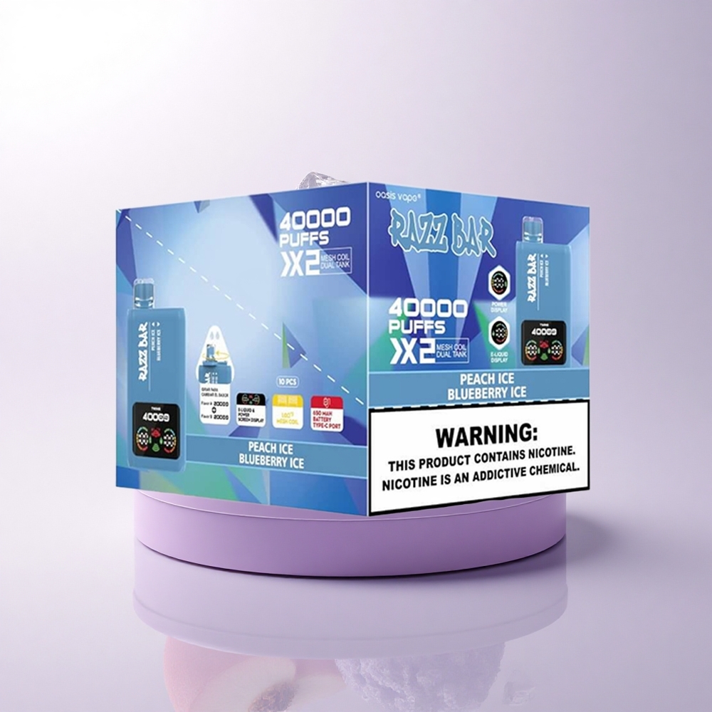 Razz Bar 40000 Puffs خوخ جليدي - توت أزرق جليدي مع شاشة عرض وملف شبكي