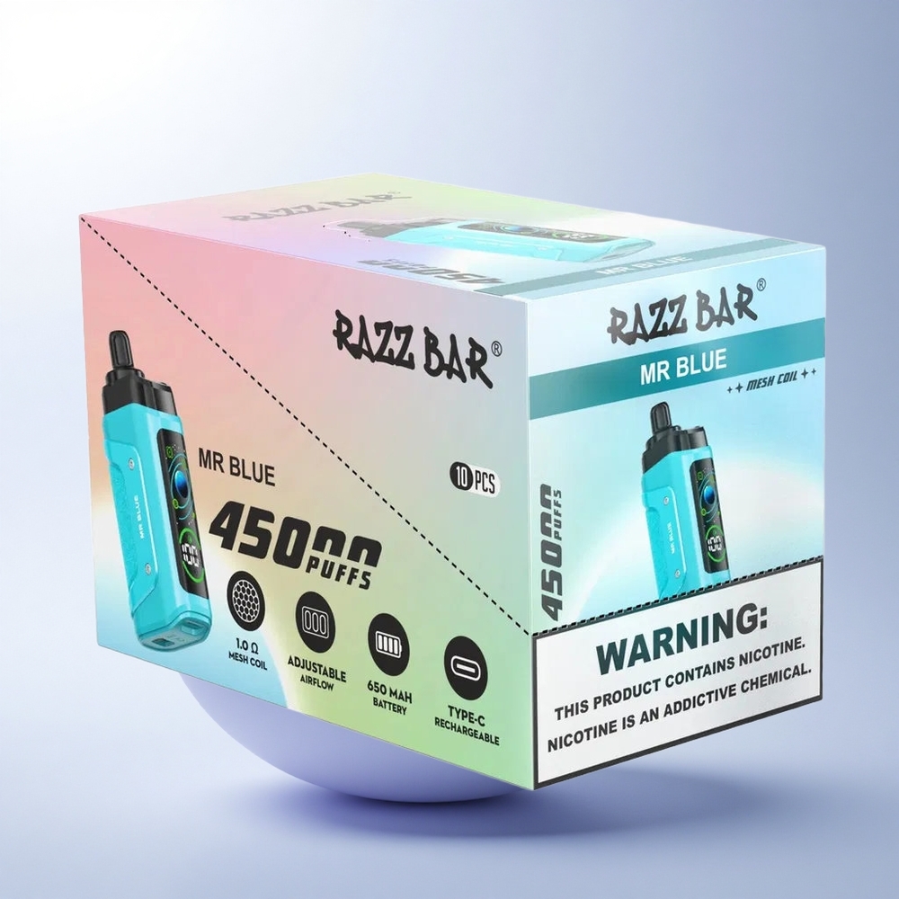 Razz Bar 45000 Puffs السيد الأزرق بشبكة 1.0 أوم وبطارية 650 مللي أمبير
