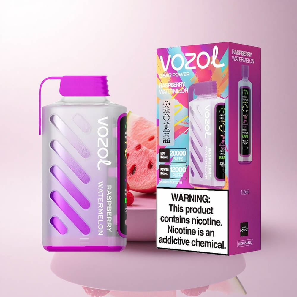 VOZOL Gear Power 20000 Puffs توت العليق البطيخي مع تقنية S.i.L.C. وشاشة كاملة